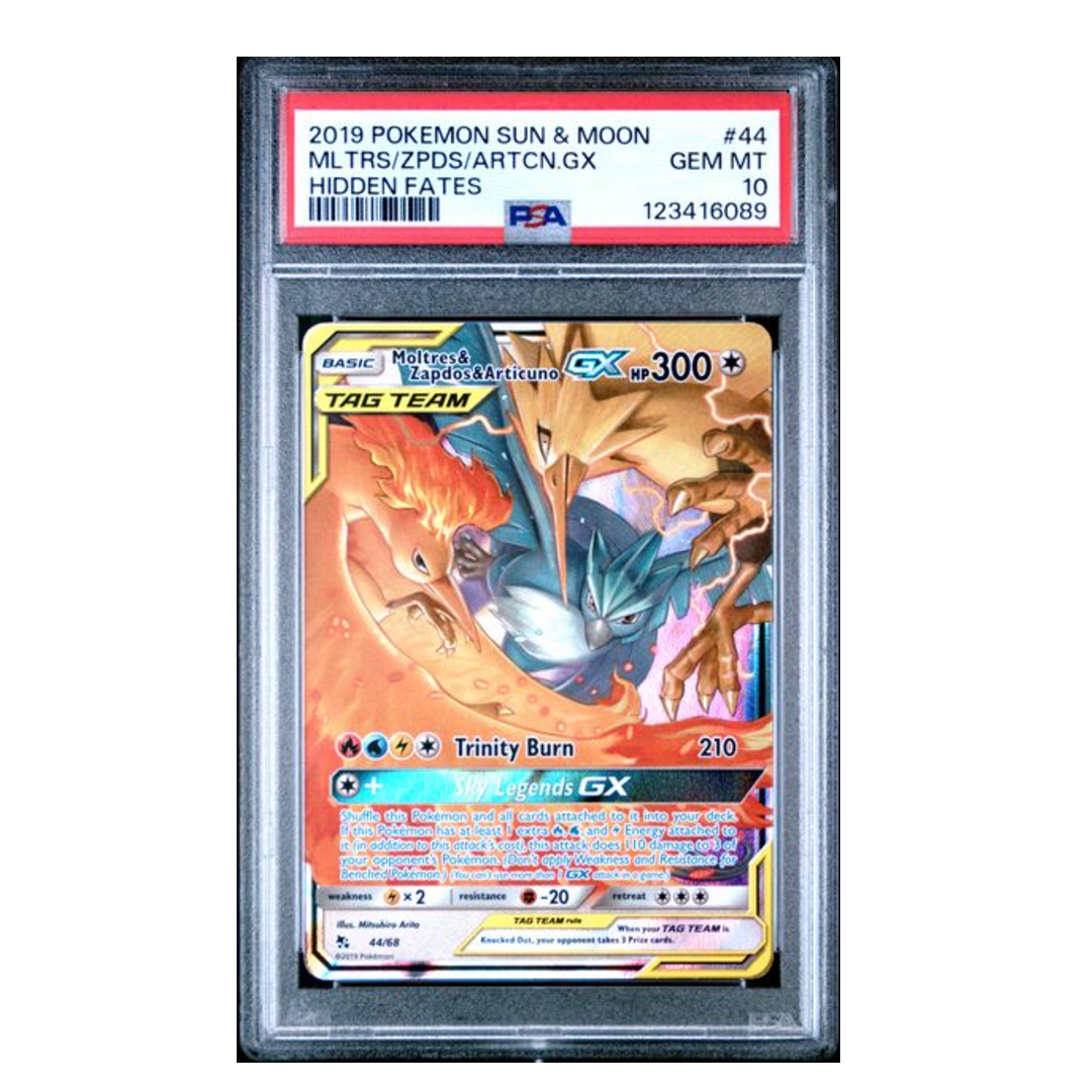 - Moltres & Zapdos & Articuno GX Tag Team Hidden Fates #44 PSA 10
